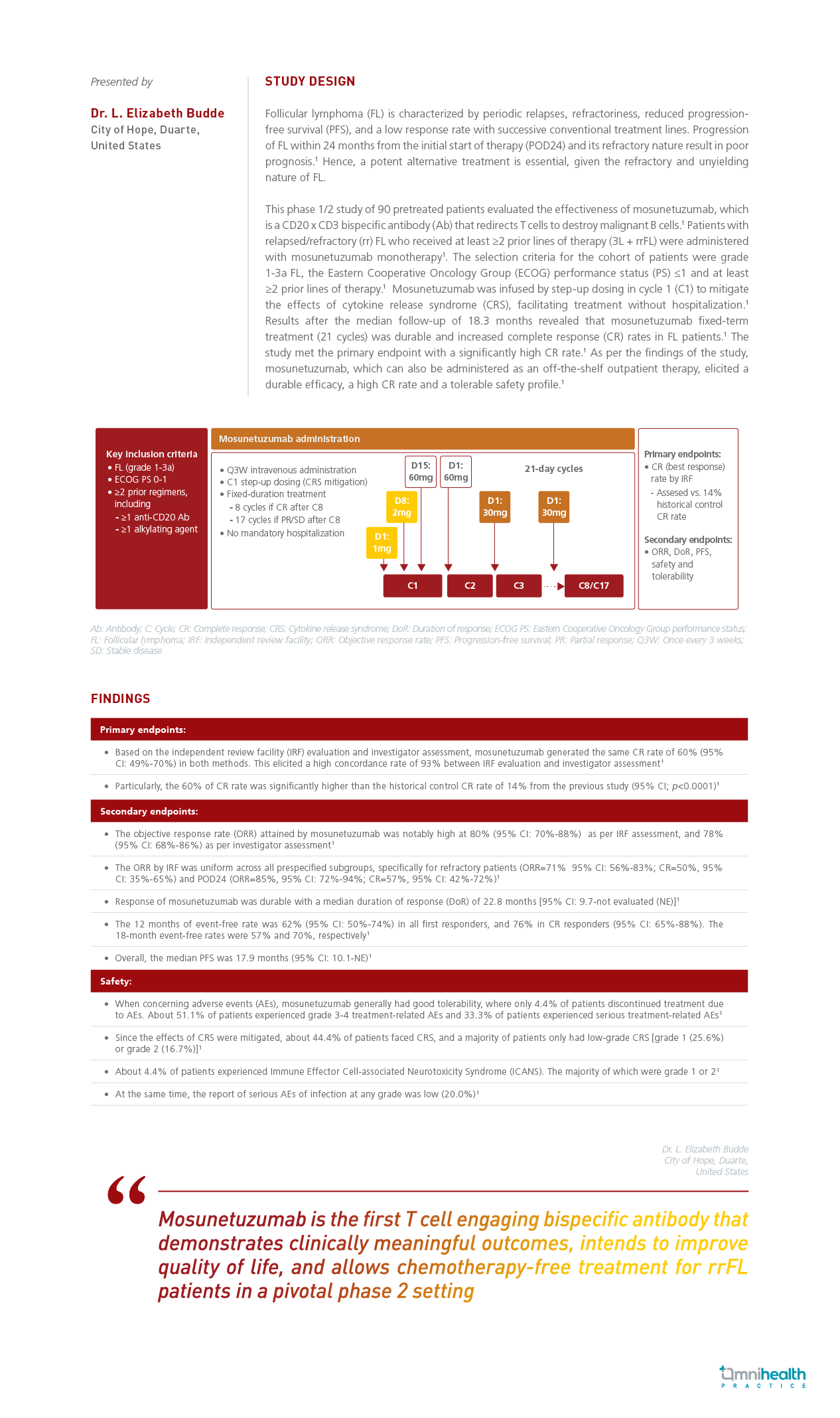 Pivotal results of phase 1/2 study: Novel mosunetuzumab elicits clinically durable response and deep remission in rrFL patients who underwent ≥2 prior lines of therapy