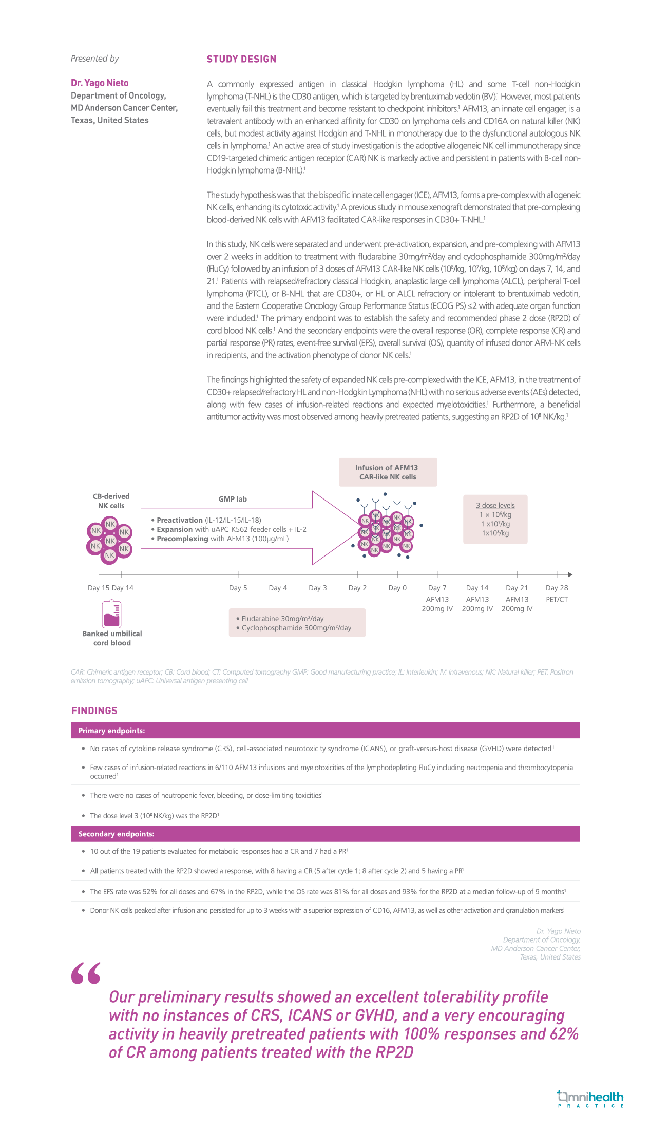 AFM13-complexed NK cells shown to be safe and promising in the treatment of refractory/relapsed CD30+ lymphoma