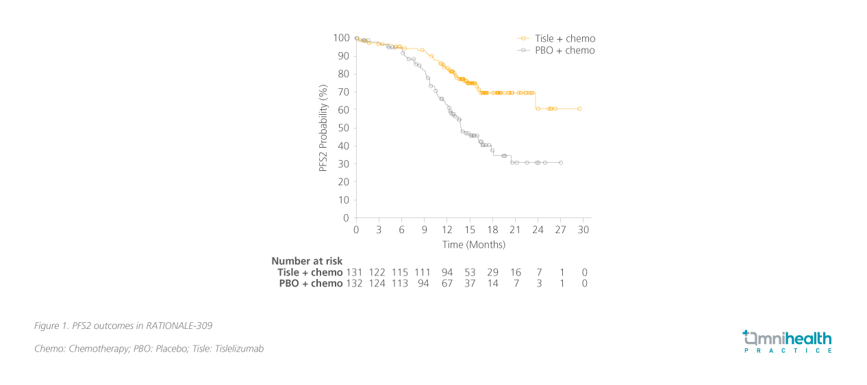 At a median follow-up of 15.5 months, the median PFS was 9.6 months for the tislelizumab group, compared to 7.4 months for the placebo group, indicating a 50% lower risk of disease progression or death (HR=0.50; 95% CI: 0.37-0.68; to evaluate p<0.0001).2 OS also improved significantly in the tislelizumab group, with the median OS not reached for the tislelizumab group and 23.0 months for the placebo group, reflecting a 40% lower risk of death (HR=0.60; 95% CI: 0.35-1.01).2