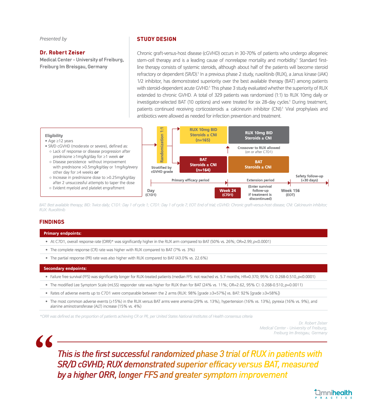 Ruxolitinib versus best available therapy in patients with steroid-refractory/dependent chronic graft-versus-host disease: Primary findings from the phase 3, randomized REACH3 study