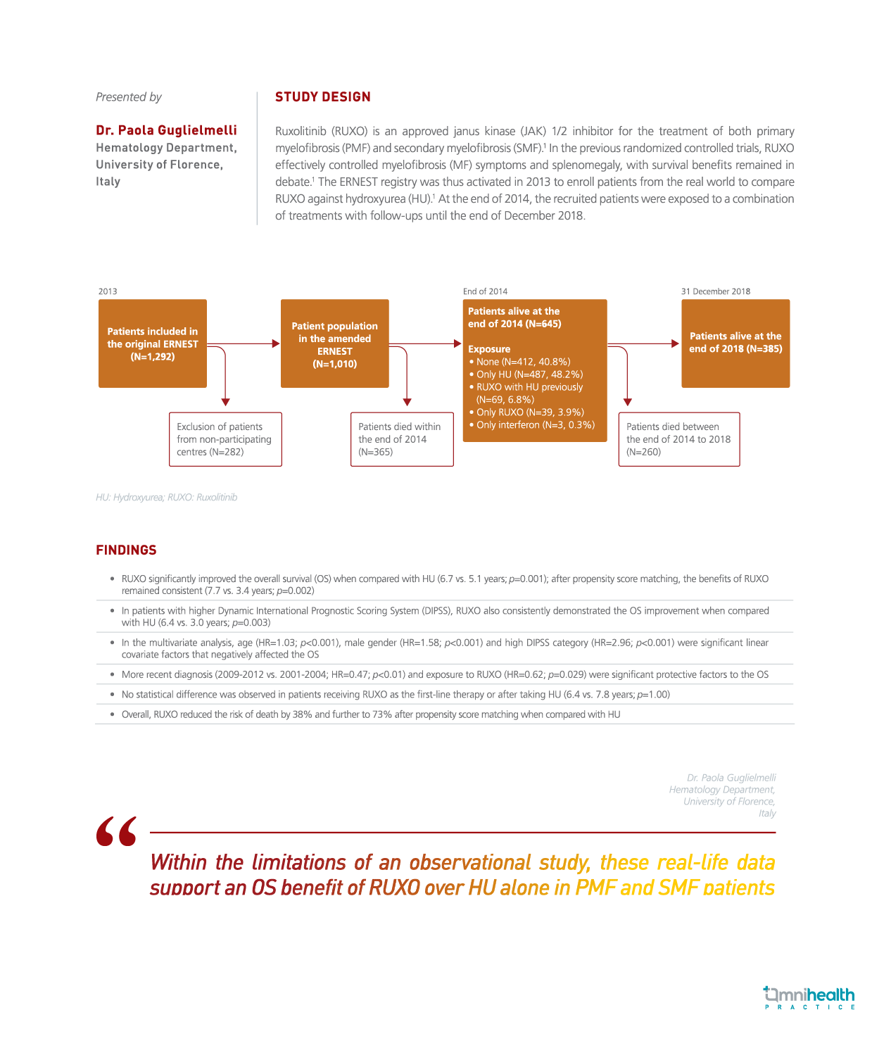 Updates on the ERNEST demonstrate the survival effects of ruxolitinib on MF patients