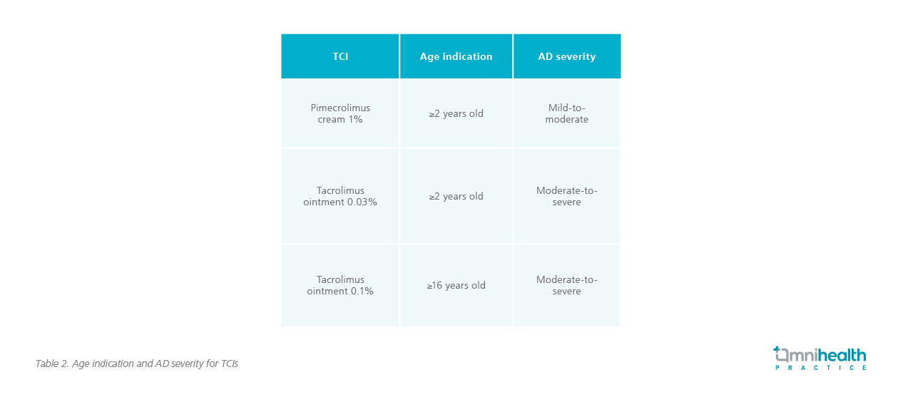 Considering the limitations of TCSs, an alternative is warranted to better manage acute flares and prevent flare recurrence. “The use of steroids is sometimes inevitable if AD is uncontrolled. The good news is that we have alternatives now,” said Prof. Hon. In corticophobic patients, topical calcineurin inhibitors (TCIs) could be used as a replacement. In contrast to skin atrophy of TCSs, TCIs have the advantage of increasing skin thickness. There are 3 TCI products currently available in the market, namely pimecrolimus cream 1% and tacrolimus ointments 0.03% and 0.1%. The pimecrolimus cream 1% and the tacrolimus ointment 0.03% can be applied in children as young as 2 years old for mild-to-moderate or moderate-to-severe AD, respectively (Table 2).4