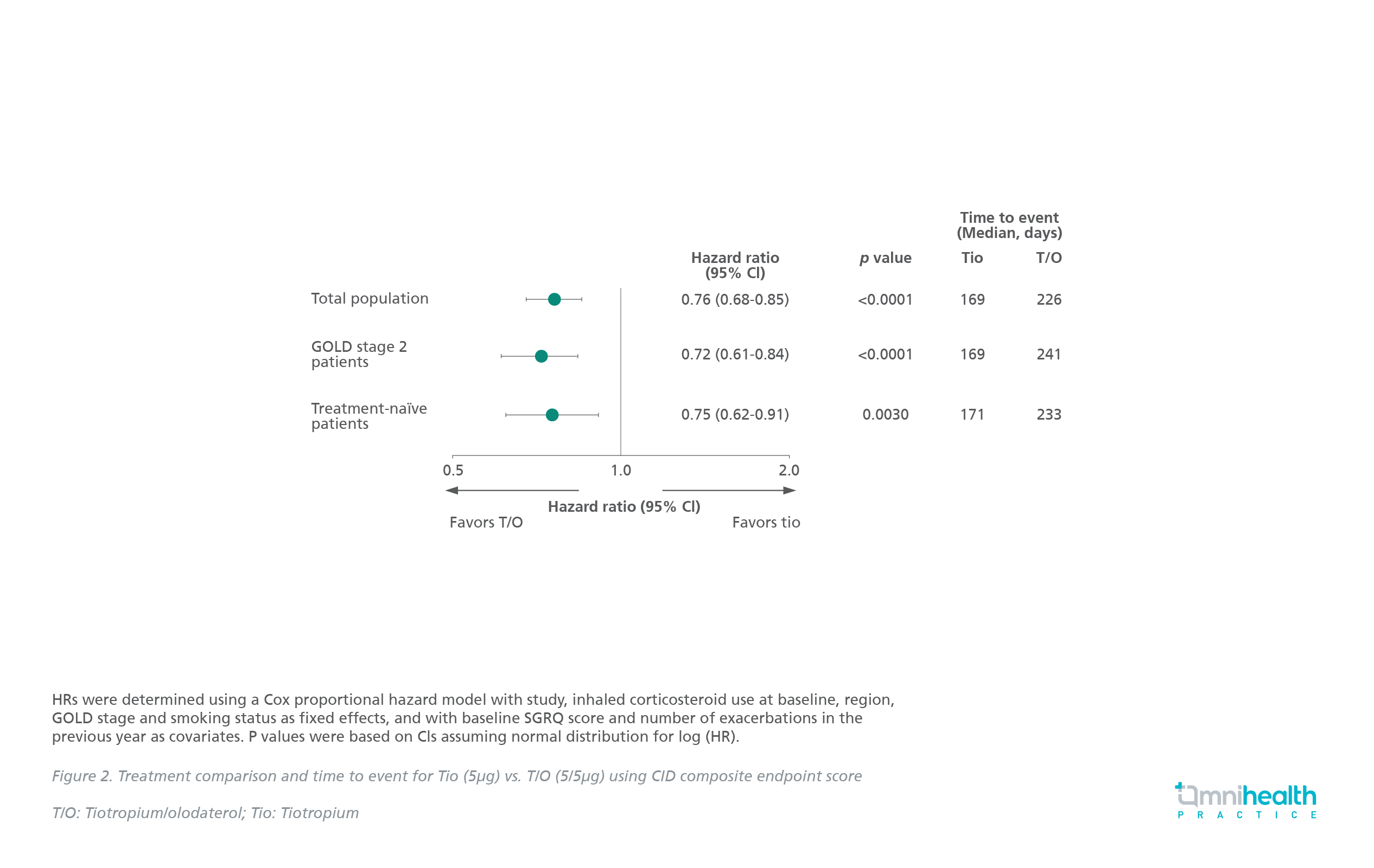 These demonstrated the advantages of treatment optimization with T/O over Tio monotherapy in delaying and reducing the risk of CID in patients with early COPD.6