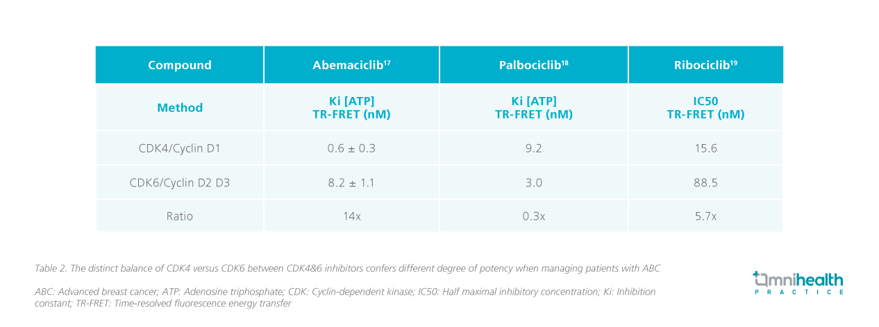 However, while CDK4&6 inhibitors are effective drugs in combination with aromatase inhibitors for the treatment of HR+, HER2- ABC, they are varied in potency with different toxicity profile (Table 2).17-19
