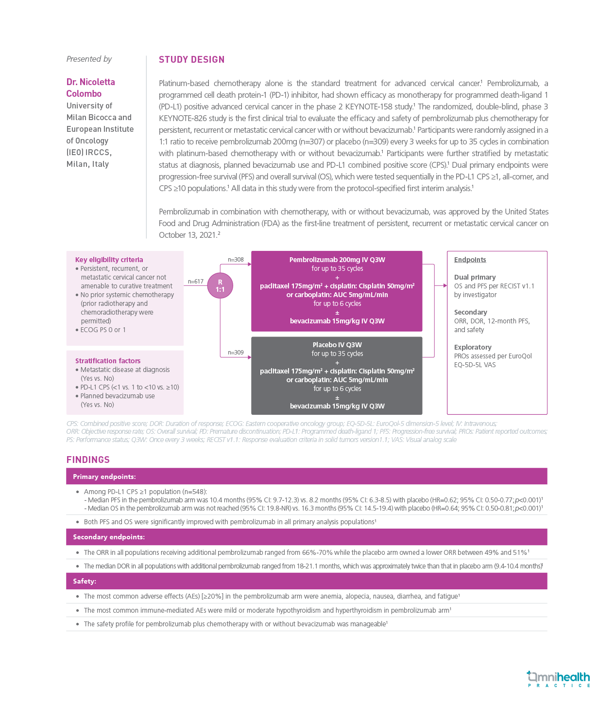 Pembrolizumab plus chemotherapy versus placebo plus chemotherapy for persistent, recurrent or metastatic cervical cancer: Phase 3 KEYNOTE-826 study