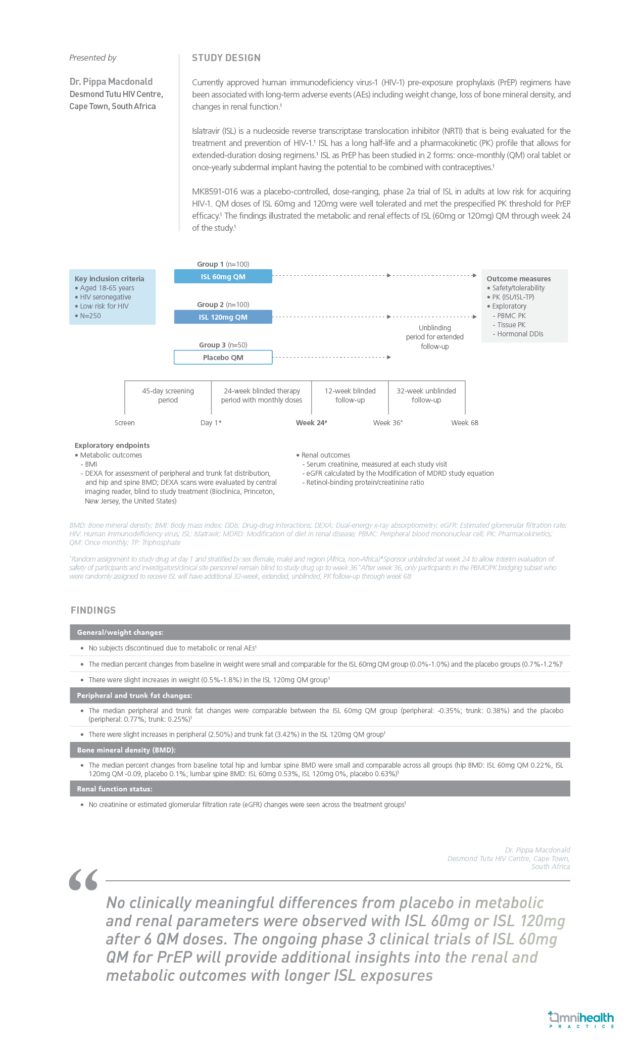 Metabolic and renal side effects of monthly ISL for HIV PrEP