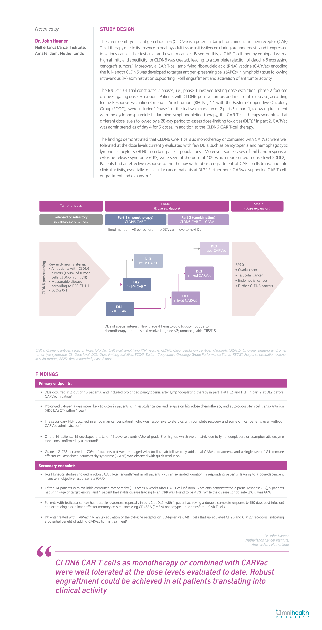CLDN6 CAR T cells and CARVac-mediated in vivo expansion demonstrate promising results in patients with CLDN-6-positive advanced solid tumors: The phase 1 BNT211-01 trial