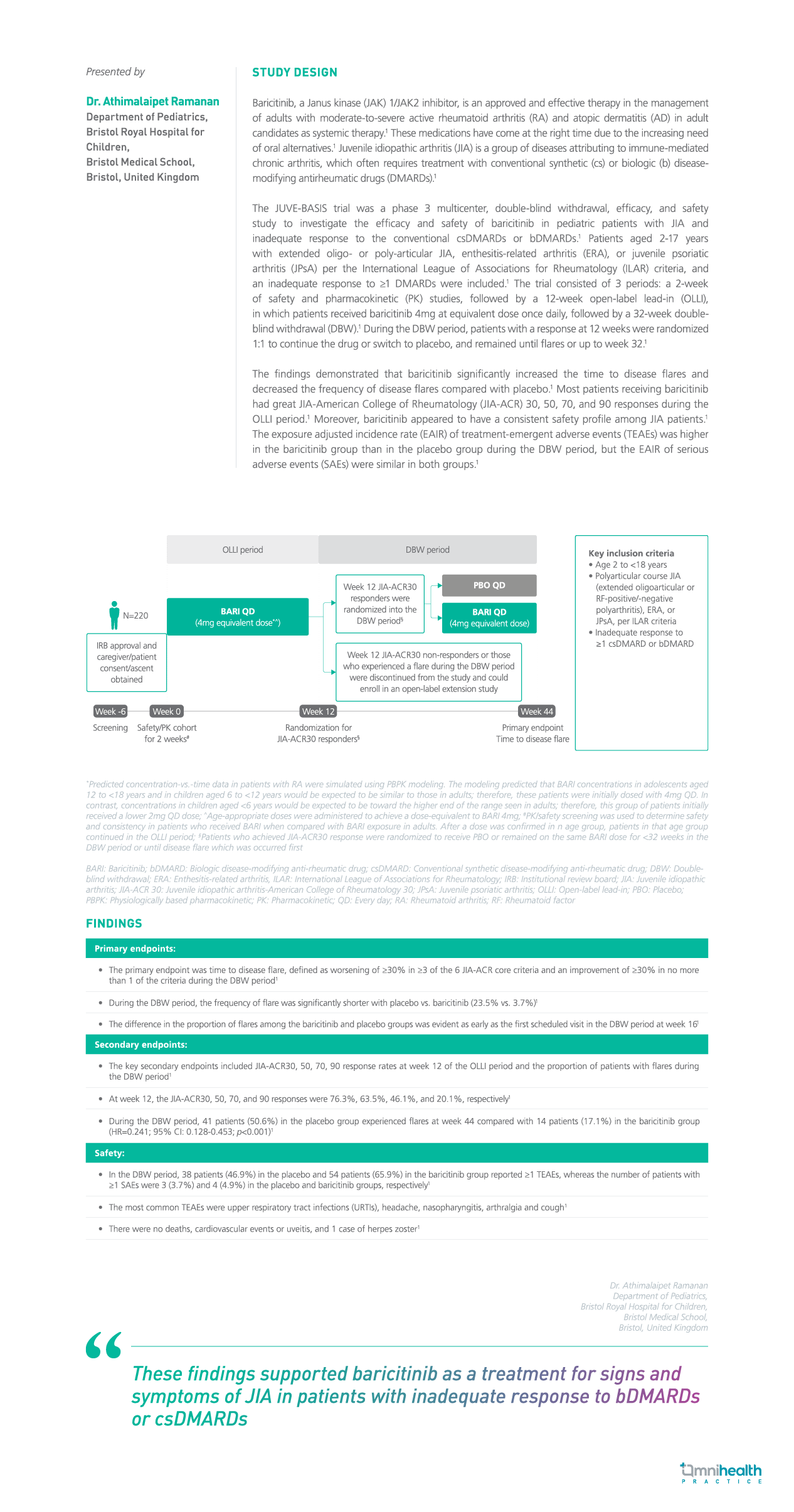 Baricitinib yields favorable outcomes in JIA: the phase 3 JUVE-BASIS trial