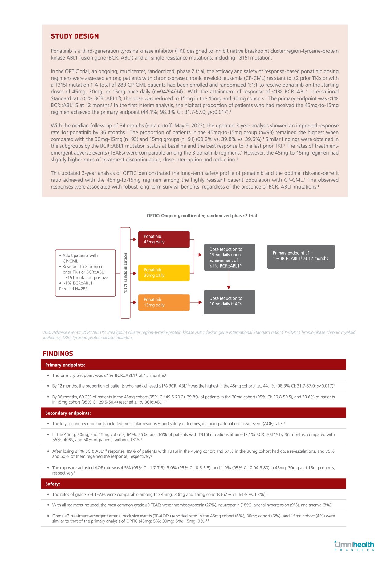 Response-based ponatinib dosing regimens show long-term responses and safety among cp-cml patients: the 3-year update of the OPTIC trial