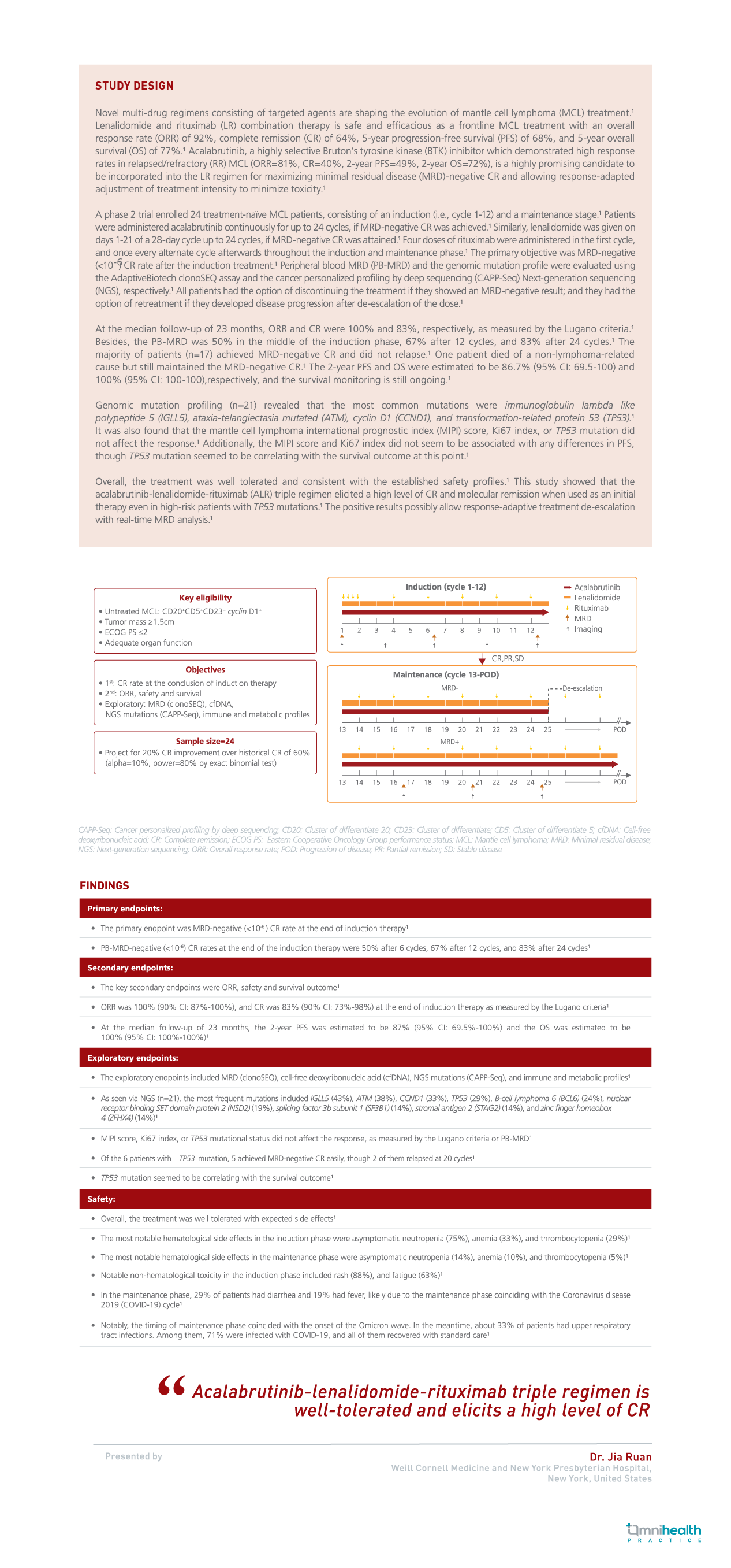 ALR triple regimen elicits a high CR rate among patients with treatment-naïve MCL and allows treatment de-escalation with real-time RMD monitoring