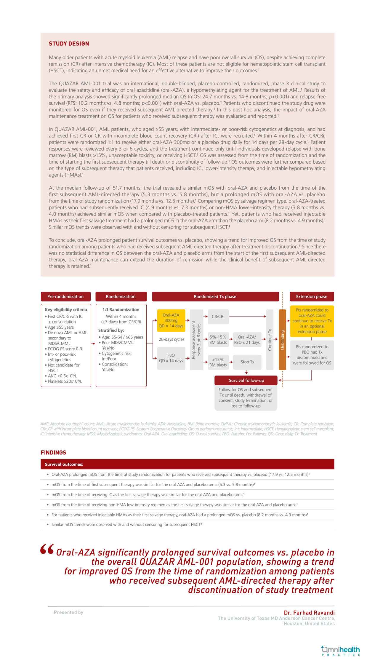 Oral-AZA maintenance treatment shows improved survival outcomes in AML patients: The QUAZAR AML-001 trial