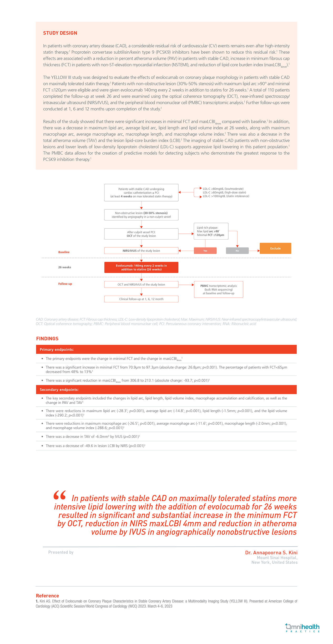 Aggressive lipid-lowering with evolocumab stabilizing plaque in stable CAD demonstrated in multimodality imaging: The YELLOW III study