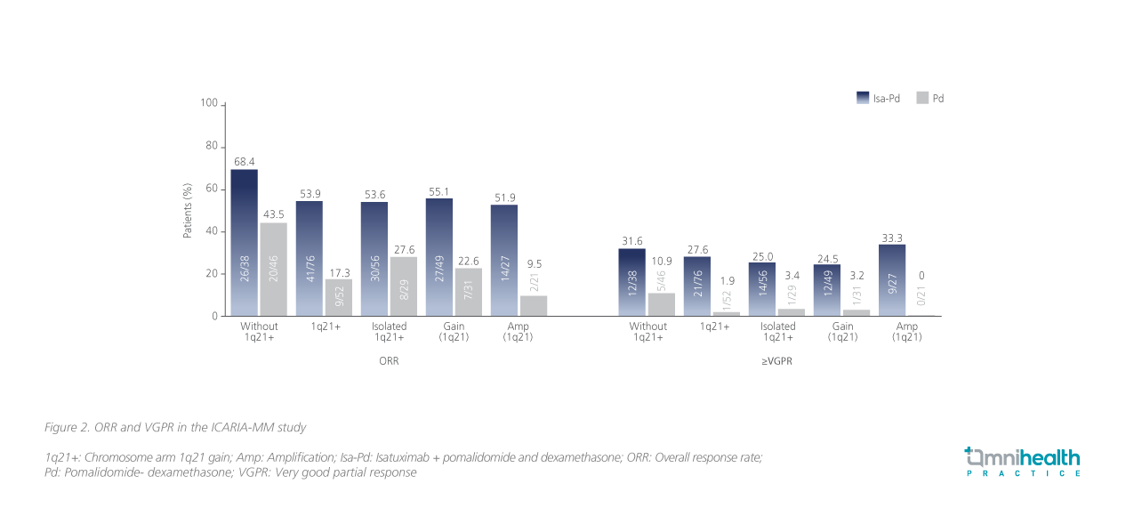 Isa-Kd is one of my favorite regimens for patients who have an early relapse, have not received CD38 antibody as part of frontline therapy, and/or have 1q21+ gain," Prof. Martin highlighted. The addition of Isato Kd also improved the depth and quality of response with higher rates of very good partial response (VGPR), complete response (CR), MRD negativity, and CR with MRD negativity.9