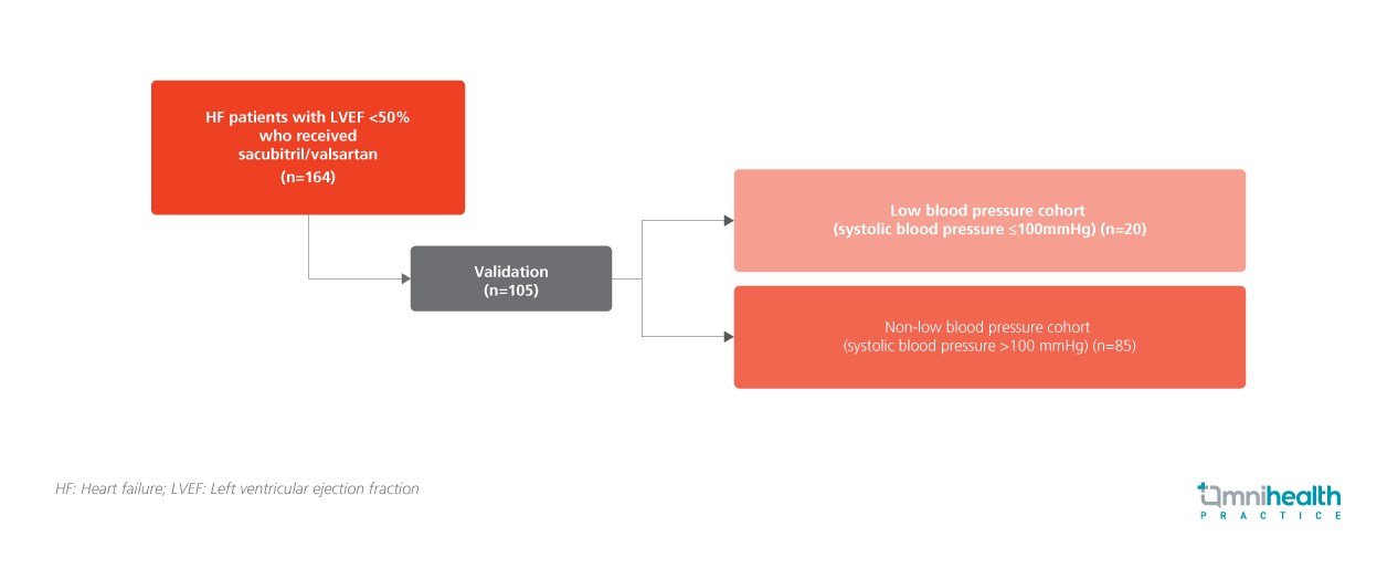 A total of 164 HF patients with LVEF <50% were recruited to receive sacubitril/valsartan between June 2020 and July 2022.1 Among the 105 validated patients, 20 with systolic blood pressure ≤100 mmHg were further categorized into the low blood pressure cohort, while the remainder (n=85) was considered as non-low blood pressure.1 Echocardiographic assessments were performed before treatment initiation as baseline and 9.5 ± 5.1 months after initiation of the maximum tolerated dose of sacubitril/valsartan as treatment outcome.1