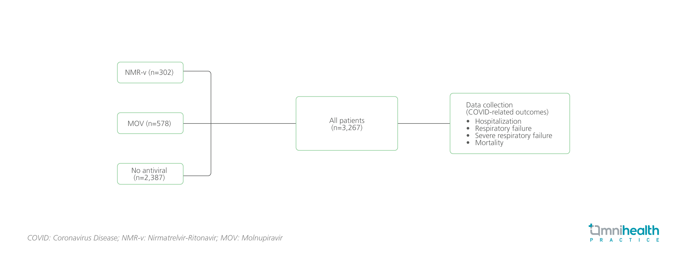 This was a retrospective, territory-wide cohort study conducted in Hong Kong, which enrolled 3,267 COVID-19 adult patients who were unvaccinated and had comorbid chronic respiratory diseases, including asthma, chronic obstructive pulmonary disease (COPD) and bronchiectasis.1 Among the recruited patients, 17.7% and 9.2% of patients received MOV and NMV-r respectively, while the rest of the study population received no antiviral treatment.1 The primary outcome of this study was the incidence of COVID-related outcomes in each patient cohort, which included hospitalization, respiratory failure, severe respiratory failure, and mortality.1