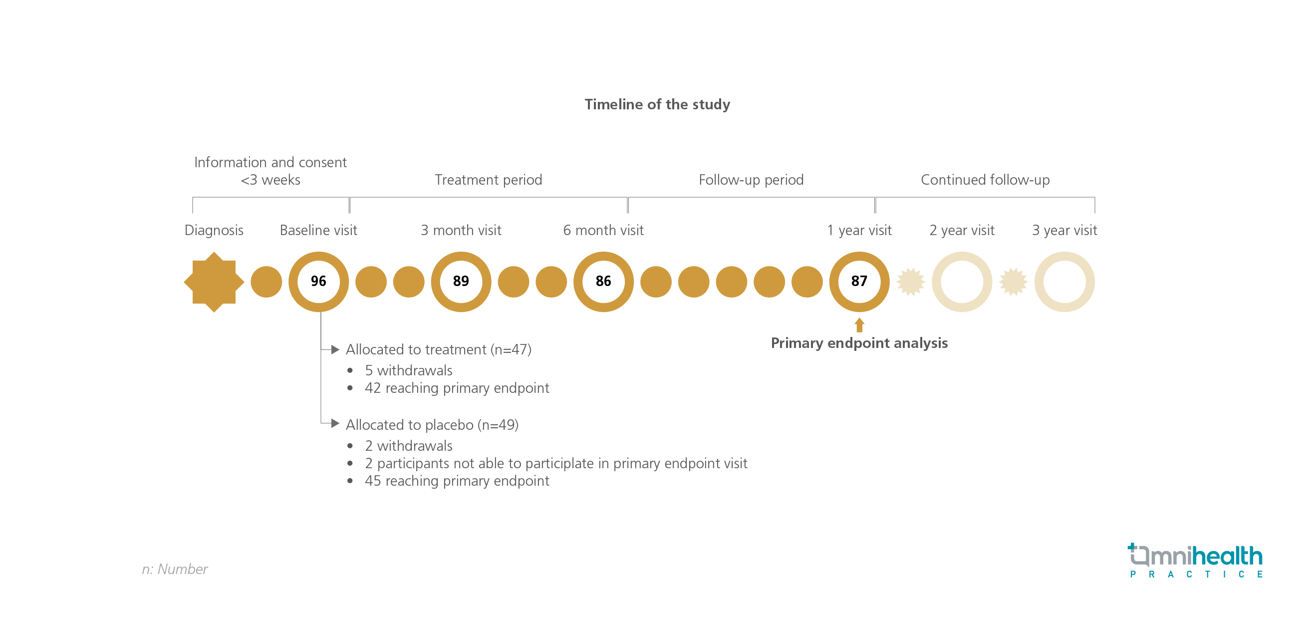 The primary endpoint of this study was the endogenous insulin production at 12 months, measured by the 2h C-peptide area under the curve (AUC) during a mixed meal tolerance test (MMTT).1 Secondary endpoints included safety, the proportion of patients with a peak C-peptide of >0.2pmol/ml, as well as changes in HbA1c and glycated albumin levels from the baseline.1