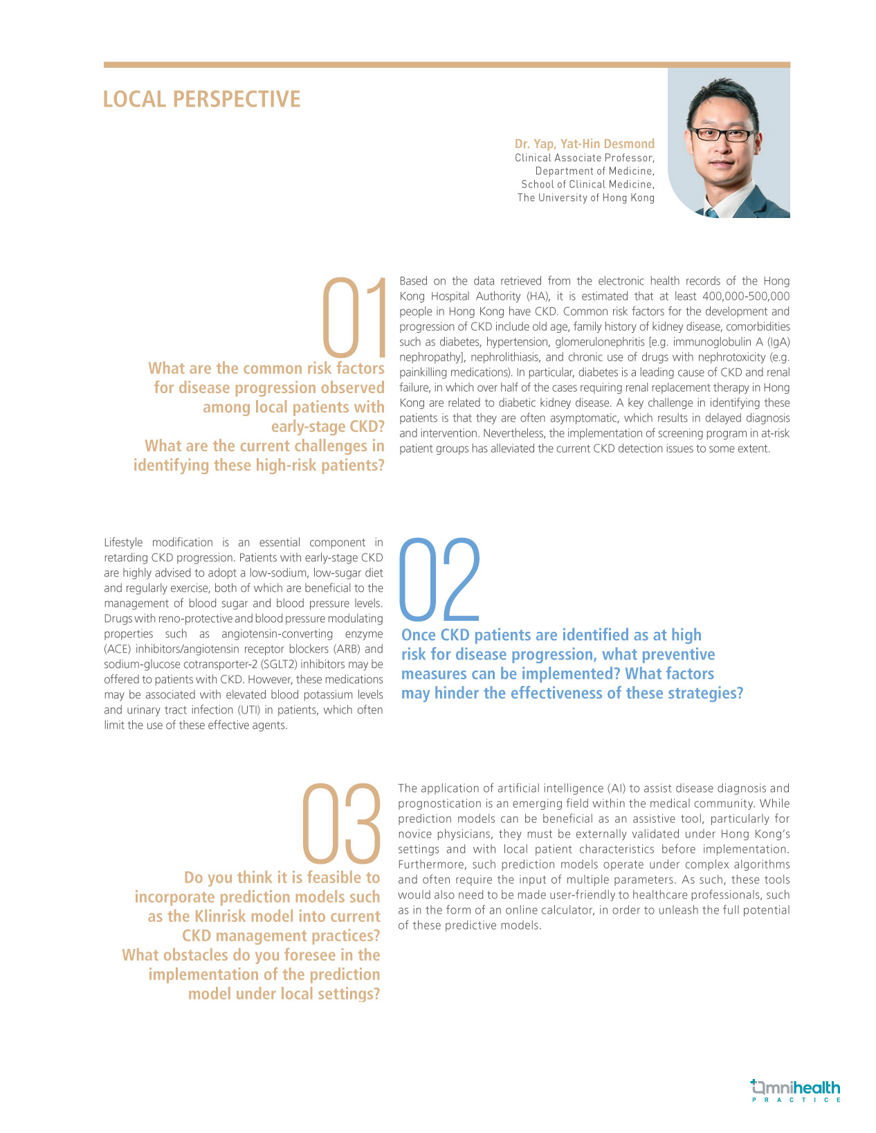 Current chronic kidney disease (CKD) management strategies are dependent on the estimated glomerular filtration rate (eGFR) of patients, which gradually shapes them into a one-size-fits-all care model that lacks personalized treatments.1 In addition, despite the availability of risk assessment tools such as the Kidney Failure Risk Equation (KFRE) that predicts the risk of progression to end-stage renal disease (ESRD), tools for assessing CKD progression risks in early stages that may enable early intervention are mostly absent, resulting in CKD being dominantly recognized and treated in late stages.1 While effective disease-modifying therapies for CKD are available, their therapeutic windows are narrow and often mistimed as high-risk CKD patients receive suboptimal recognition during the early stages of CKD under the current care model.1 This leads to patients being burdened with significant hospitalization costs from potentially avoidable dialysis, while low-risk patients might be over-treated and experience unnecessary side effects and costs.1
