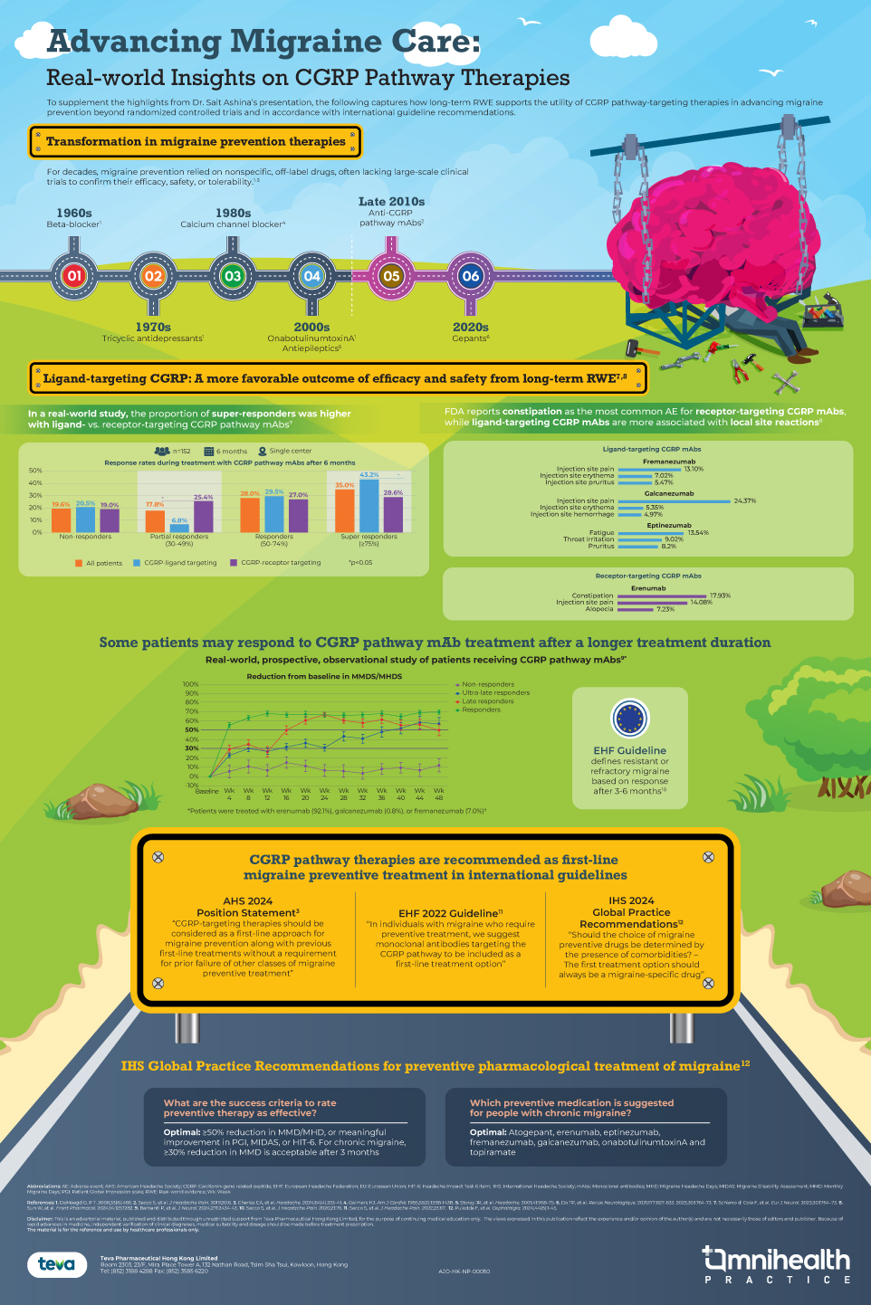 For decades, migraine prevention relied on nonspecific, off-label drugs, often lacking large-scale clinical trials to confirm their efficacy, safety, or tolerability.1-3 This has resulted in high discontinuation rates.2,3 However, the introduction of calcitonin gene-related peptide (CGRP) pathway-targeting therapies has revolutionized migraine management.3 At a recent symposium, Dr. Sait Ashina, Director of the BIDMC Comprehensive Headache Center and Assistant Professor at Harvard Medical School in the United States (US), discussed how beyond randomized controlled trials (RCTs), the 5-year real-world evidence (RWE) data further demonstrate the utility of CGRP pathway-targeting therapies in the evolution of migraine prevention.