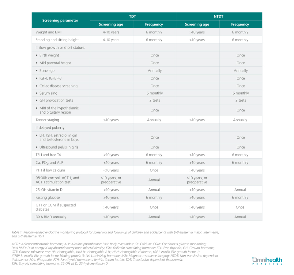 Earlier guidelines on endocrine care in thalassemia focused mainly on β-thalassemia major, leaving gaps in management strategies for patients with β-thalassemia intermedia and α-thalassemia.1 To address this, an international panel of 14 experts representing eight pediatric endocrine societies convened to review the evidence and develop best practice recommendations.1 Using a Delphi process, 43 consensus statements were finalized, covering screening and management of endocrine dysfunction across all forms of thalassemia in children and adolescents.1