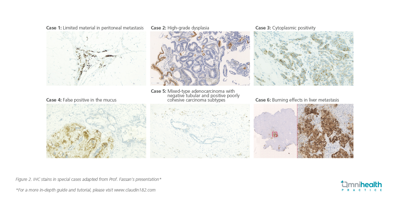 To understand how to interpret the results of molecular tests for CLDN18.2 is imperative. Prof. Fassan further illustrated this process by sharing examples of IHC staining slides for the identification of CLDN18.2 expression (figure 1).