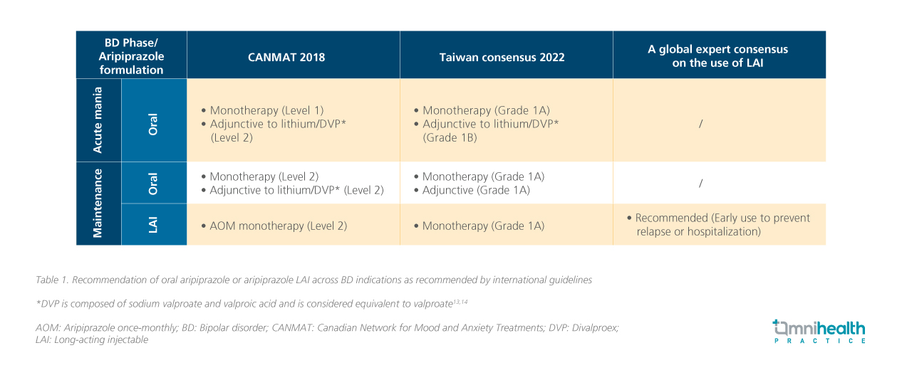 International guidelines further substantiate this proactive approach (table 1).6,7,12 The latest Canadian Network for Mood and Anxiety Treatments (CANMAT) and the International Society for Bipolar Disorders (ISBD) guidelines explicitly list AOM as a first-line treatment for maintenance therapy.6 Recognizing the universal reluctance to adopt LAIs early, a global expert consensus published in 2024 provided clear guidance.7 It stressed that LAIs are not solely for patients with the most severe disease or established sub-optimal adherence.7 Instead, they advocated for a proactive, preventive approach.7